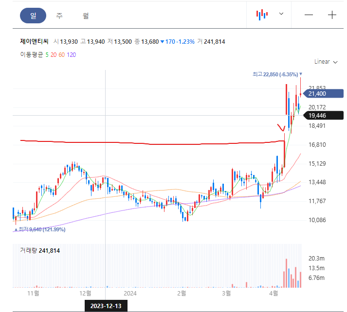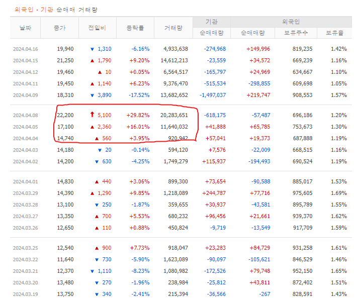 1번과 2번은 거래량이 비슷했으나 3번에서 거래량이 확실히 터지며 주가 상승
