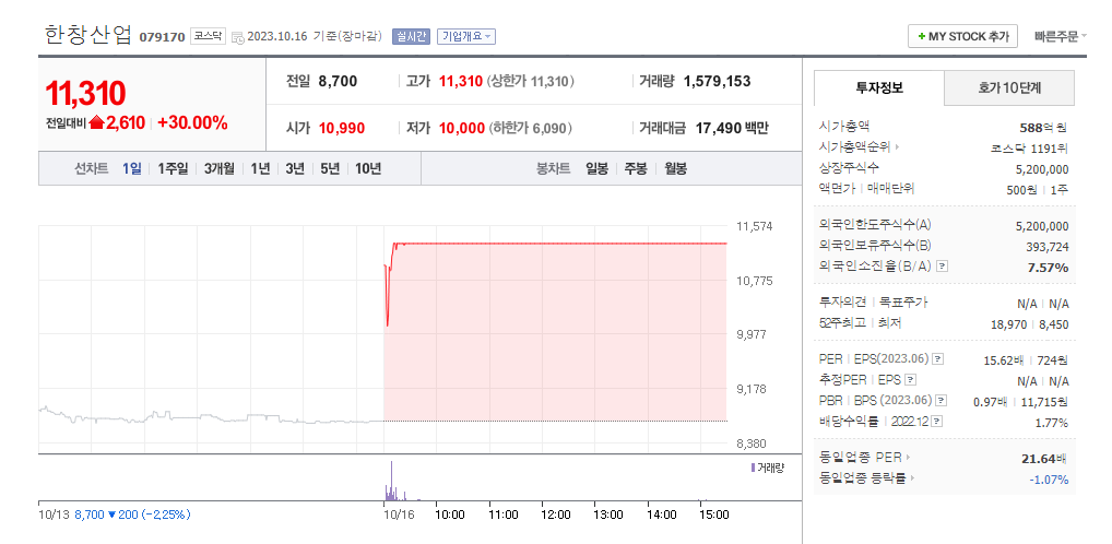 | 23.10.18 상한가 종목 흥아해운 중앙에너비스 TPC 피델릭스 (0) | 2023.10.18 |