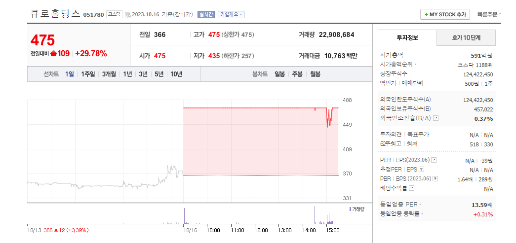 | 23.10.12 목요일 상한가 종목 테라사이언스 폴라리스세원 스튜디오산타클로스 (0) | 2023.10.12 |