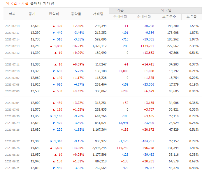 | 23.7.20 목요일 상한가 종목. 제이스코홀딩스, 인벤티지랩, 코이즈, 더코디 (0) | 2023.07.20 |
