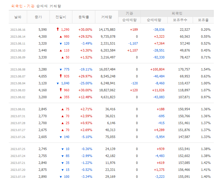 그 이후 주가는 다시 호재 기사 (SNS)가 나오며 상한가를 갔다.