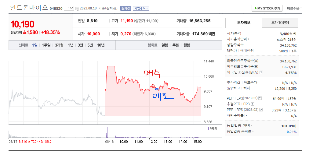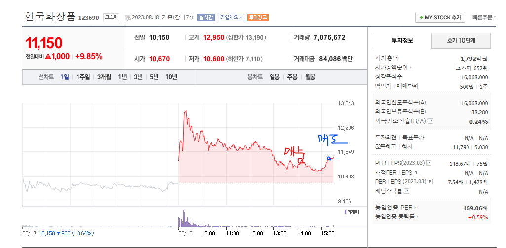 오늘은 내가 생각했던 위치보다 좀더 빨리 매수를 해서 간이 콩닥콩닥했다.